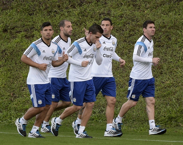 | Anh cùng đồng đội tập chạy bộ nhẹ nhằm tránh chấn thương trước trận đối đầu Iran. Mục tiêu của Argentina là chiến thắng trước đại diện của châu Á để sớm giành vé vào vòng tiếp theo. |