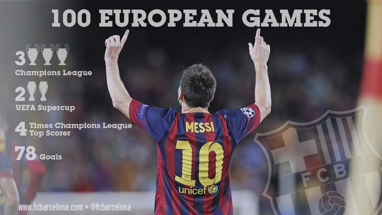 Cuộc đối đầu với Bayern giữa tuần trước cũng là trận đấu thứ 100 của Messi tại Cúp châu Âu. Trong quá trình tạo ra cột mốc trọng đại đó, Messi ghi dấu ấn trong 102 bàn thắng với 78 pha lập công và 24 đường kiến tạo. Messi hiện là chân sút xuất sắc nhất lịch sử Cúp C1/Champions League với 77 bàn, hơn Ronaldo 1 bàn.