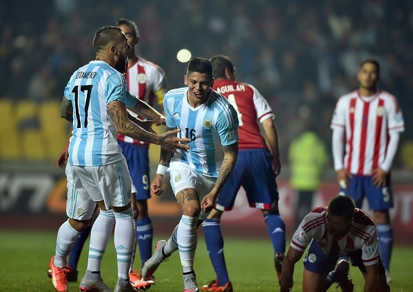 | Tuy nhiên, ĐT Paraguay không thể cản Leo và đồng đội tỏa sáng. Từ pha đá phạt của Messi, Marcos Rojo là cầu thủ mở tỷ số cho đội tuyển xứ sở tango. |
