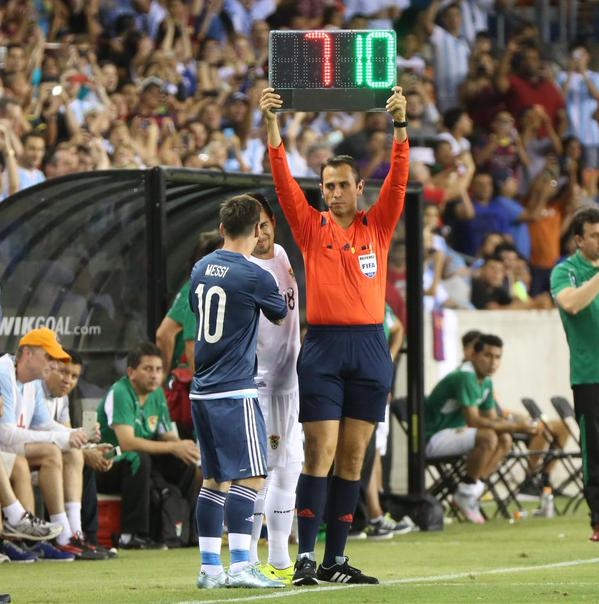 | Lionel Messi thay Gaitan phút 65. Đây là lần đầu tiên siêu sao 28 tuổi vào sân từ băng ghế dự bị trong màu áo đội tuyển quốc gia kể từ trận hòa 1-1 trước Ecuador tại vòng loại World Cup 2014 (năm 2013). |