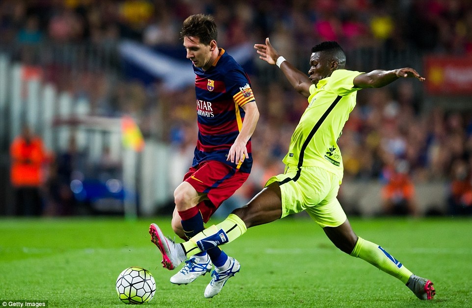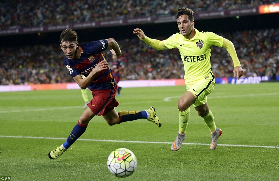 | Marc Bartra là người khai thông bế tắc cho Barca phút 51. Sau đường chuyền của Messi, hậu vệ người Tây Ban Nha khống chế bằng ngực trước khi hạ gục thủ thành Ruben. |