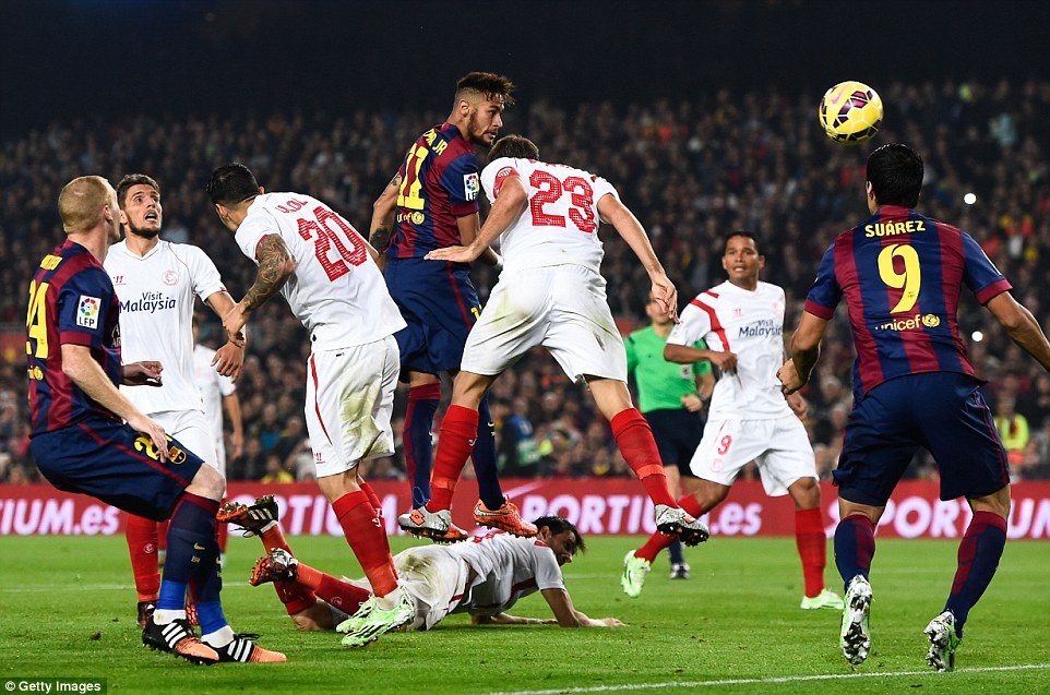 | Tuy nhiên, chỉ 2 phút sau đó (phút 49), Neymar giúp Barca tái lập thế dẫn trước bằng pha đánh đầu lái bóng chính xác sau cú đá phạt của Xavi. |