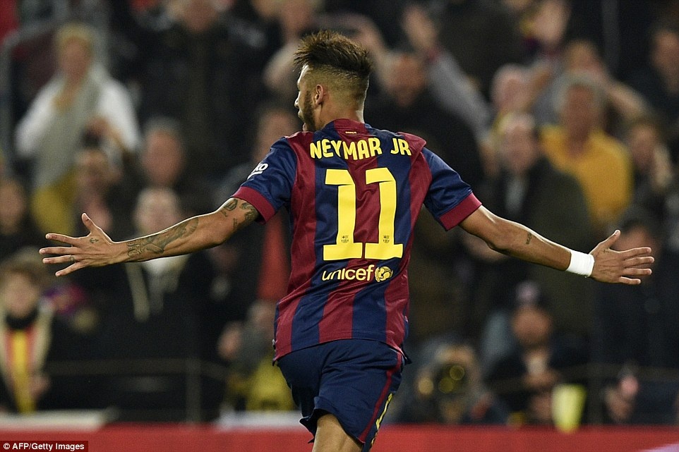 | Đây là bàn thắng thứ 12 của Neymar cho Barca tại giải năm nay. |