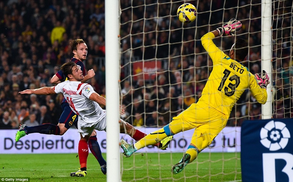 | Tiền vệ người Croatia không ăn mừng bàn thắng, bởi Sevilla là đội bóng cũ mà anh gắn bó trong 4 mùa giải trước khi chuyển sang khoác áo Barca trong hè vừa qua |