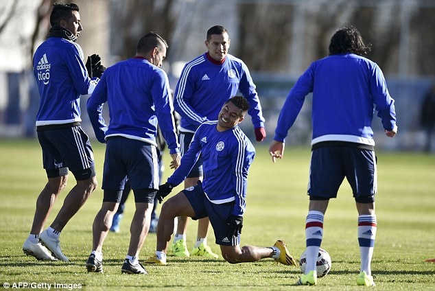 | Trong khi đó, ĐT Paraguay tập luyện tích cực cho trận bán kết gặp lại dàn sao Argentina. |