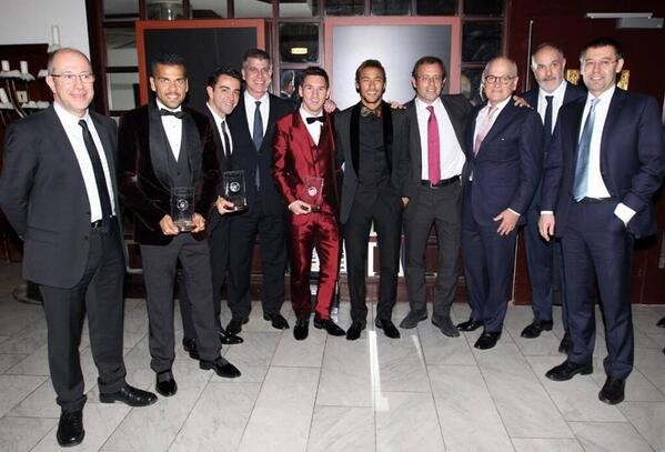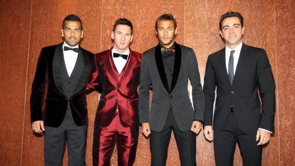 | Messi và những người bạn Barca. "Dù là fan ruột của Messi nhưng chẳng thế nào mê nổi những bộ cánh hoa hòe hoa sói của M10", một người hâm mộ viết. |