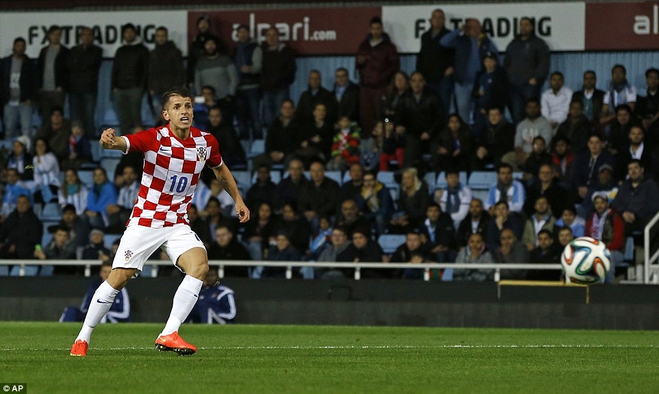| Phút 11, Croatia bất ngờ vượt lên dẫn trước. Sau đường chuyền của Kovacic, Anas Sharbini tung ra cú sút hiểm hóc đánh bại thủ thành Romero. |