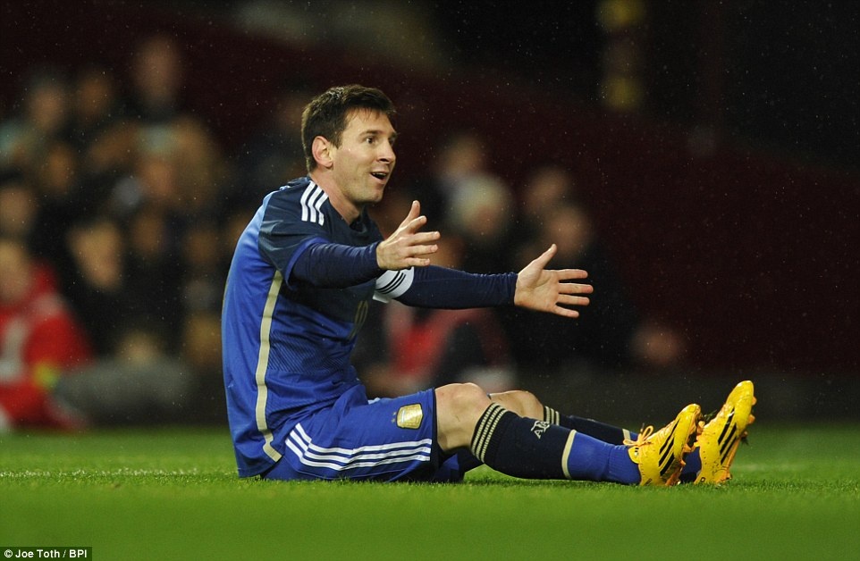 | Sau khoảng thời gian đó, Messi nỗ lực gỡ hòa cho Albiceleste. Tuy nhiên, siêu tiền đạo đang khoác áo Barca vấp phải sự truy cản quyết liệt từ đối phương. |