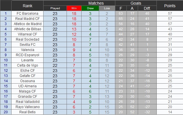 Với 3 điểm có được, Barcelona đã trở lại ngôi đầu La Liga sau 2 vòng đấu rơi vào tay Atletico Madrid rồi Real Madrid. Họ có cùng 57 điểm như 2 đối thủ thành Madrid nhưng nhỉnh hơn về chỉ số phụ.