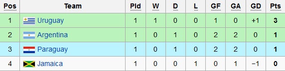 Vị trí của các đội ở bảng B tại Copa America 2015