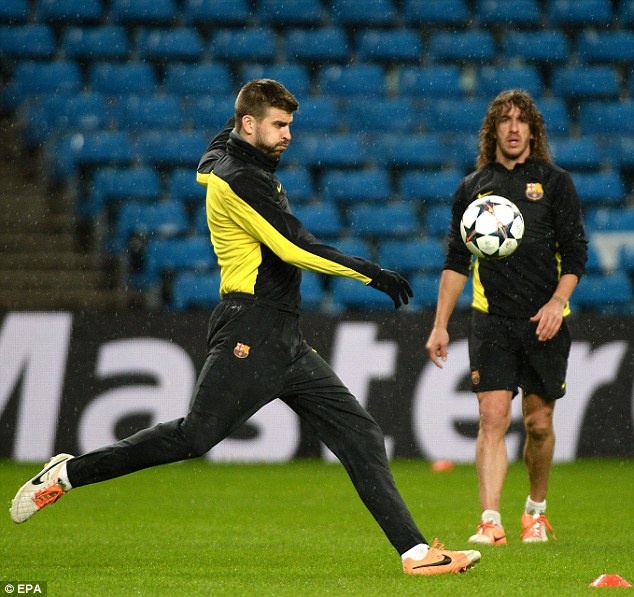 | Trung vệ Pique có tinh thần khá thoải mái khi tập luyện. Trong quá khứ, Pique từng khoác áo đội bóng hàng xóm của Man City là M.U. |
