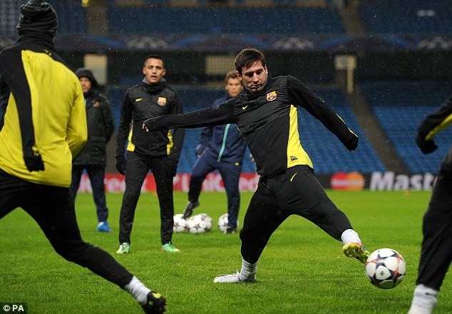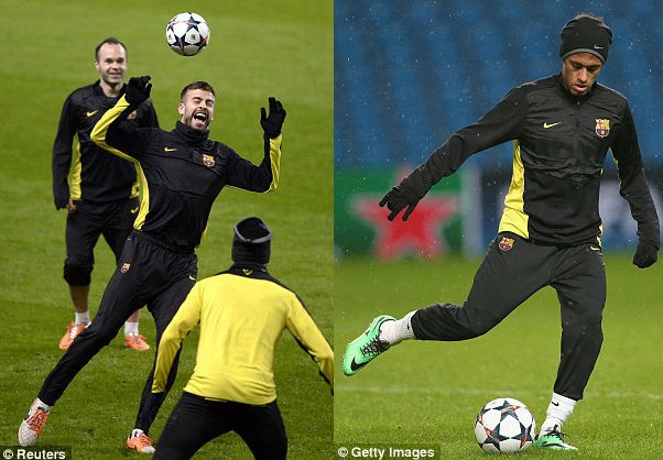 | Các cầu thủ Barca tích cực tập luyện trước trận đấu với Man City. |