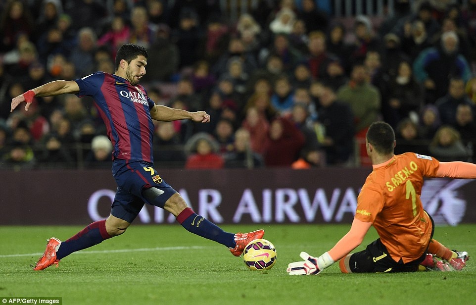 Barca tạo ra thế áp đảo ngay sau tiếng còi khai cuộc. Phút 12, Luis Suarez suýt mở tỷ số sau cú sút căng. Tuy nhiên, thủ thành Asenjo đã không cho tiền đạo người Uruguay cơ hội ăn mừng bàn thắng.