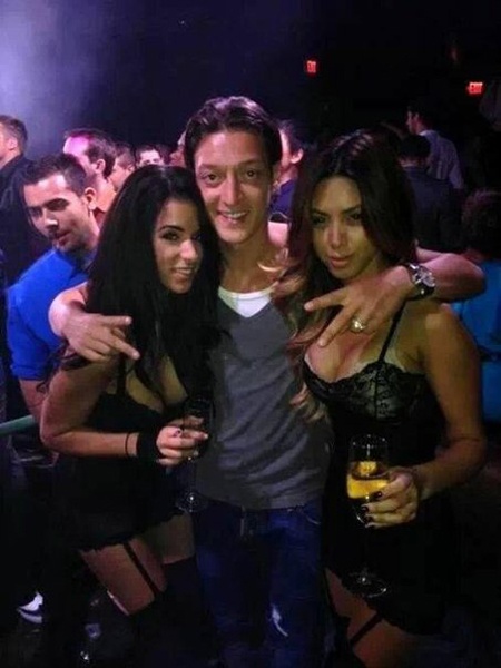 | Oezil vui vẻ với các chân dài tại hộp đêm The Pearl. Ảnh: Bild. |