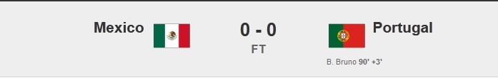 Trận đấu giữa Mexico và Bồ Đào Nha khép lại với tỷ số 1-0 nghiêng về đại diện đến từ châu Âu.