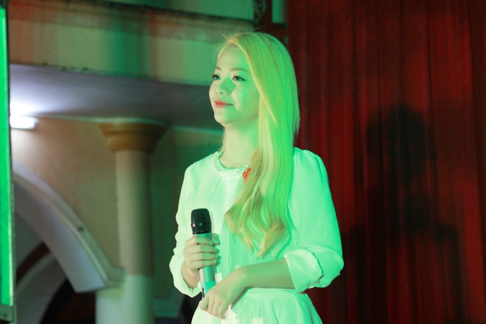 | Trước giờ ra sân khấu trình diễn, Mi-A tinh nghịch trong khu vực hậu trường, cô thường xuyên trêu ghẹo đồng nghiệp có mặt tại đây. |