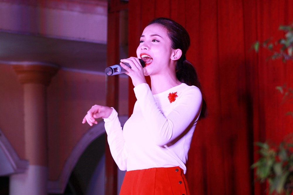 | Nữ ca sĩ gửi tặng ca khúc Tình mẹ đến với mẹ của cô ngồi dưới hàng ghế khán giả. |