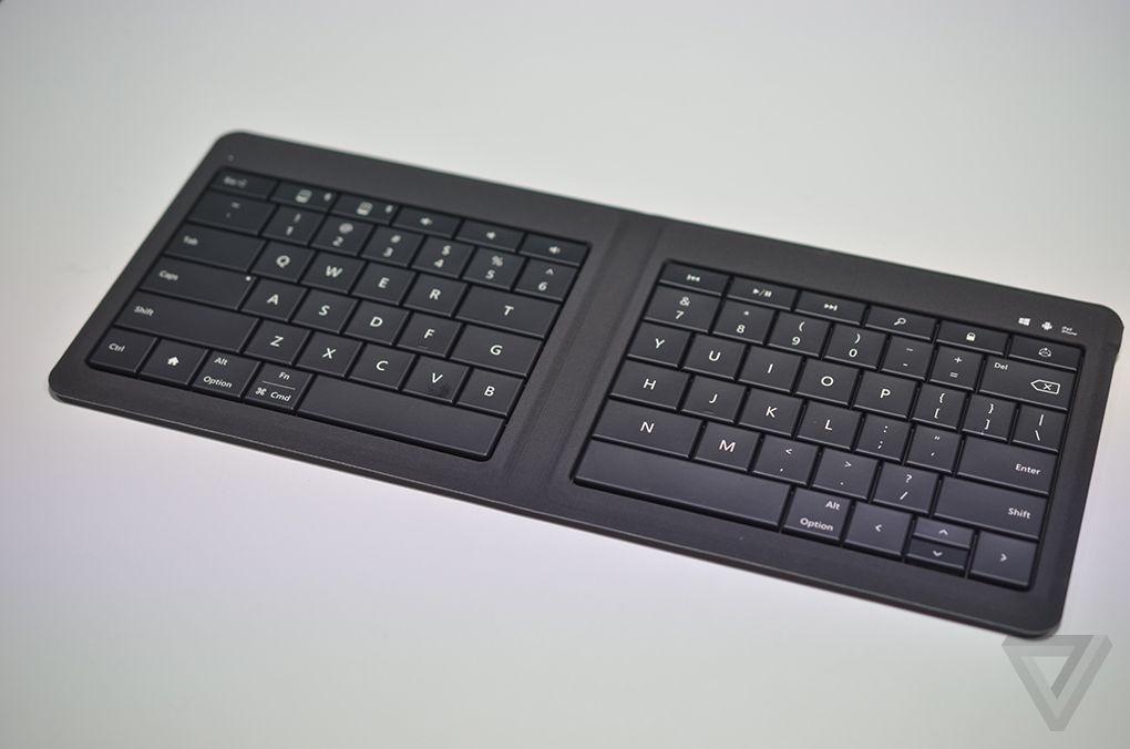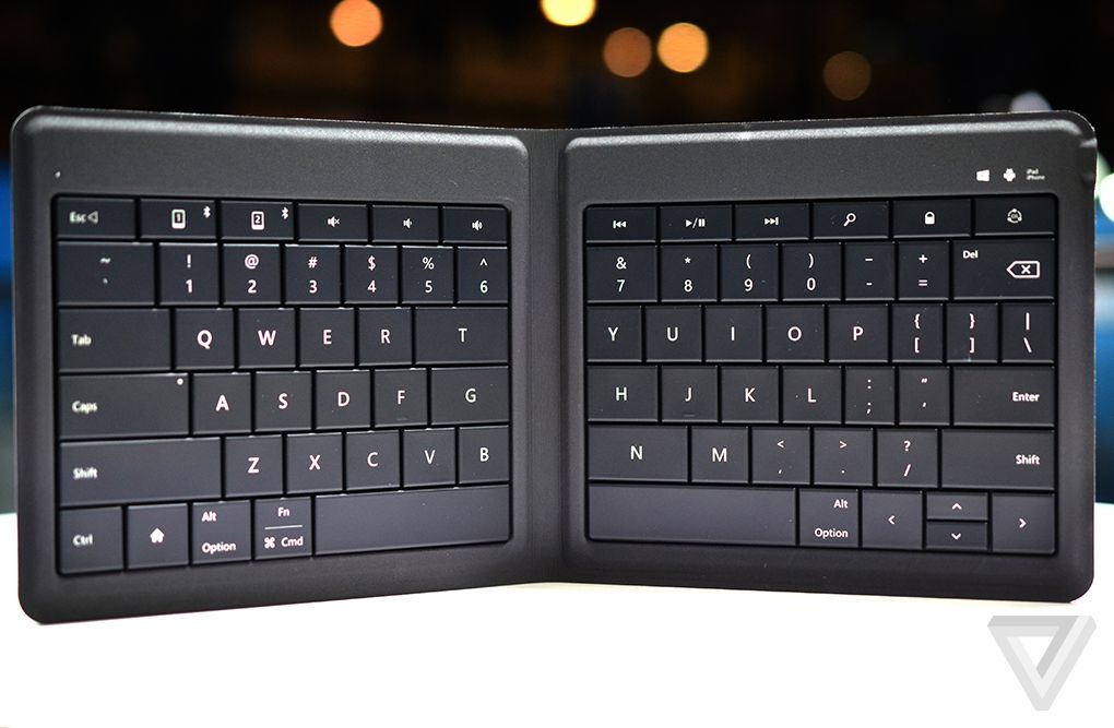 Có tên gọi “The Microsoft Universal Foldable Keyboard”, mẫu bàn phím nhỏ gọn này được trang bị kết nối Bluetooth để có thể hoạt động với đa số thiết bị di động. Một khuyết điểm là nó thiếu đi nút Windows, vốn có mặt ở hầu hết các máy tính chạy hệ điều hành này. Khác với bản mẫu ban đầu, sản phẩm có thể gập lại gọn gàng và được cố định bởi các nam châm. Do đó, người dùng hoàn toàn có thể bỏ vào túi cùng với máy tính hoặc smartphone.