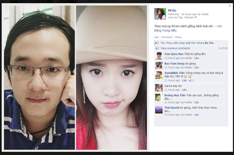 | Chia sẻ trên trang cá nhân bức hình ghép của hai chị em, hot girl Sài thành hào hứng chia sẻ: "Theo mọi người, em mình giống mình không nhỉ?". |