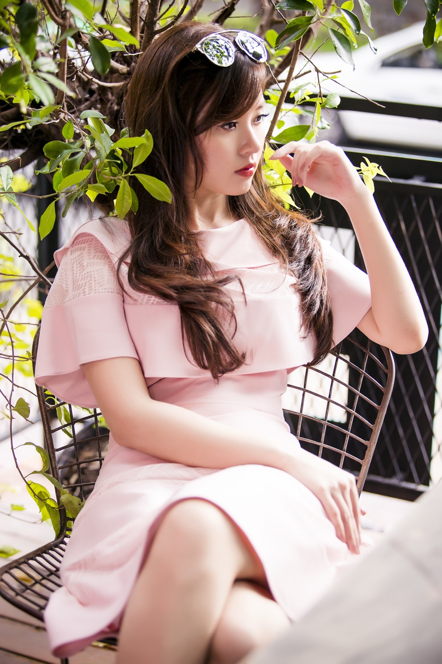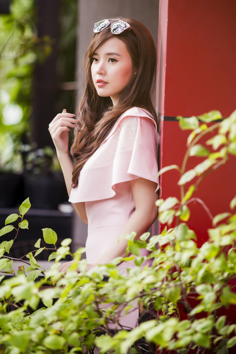 | Bộ cánh tông hồng nhạt phù hợp với vẻ nữ tính, yêu kiều của diễn viên Mùa hè lạnh. |