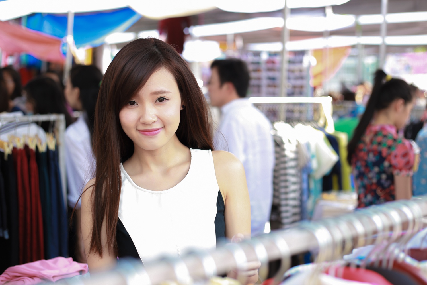 | Nữ diễn viên sinh năm 1989 tích cực chọn đồ. Cô cho biết nhiều bộ váy áo ở đây có giá rẻ và chất liệu khá ổn nên không khó hiểu khi nhiều bạn trẻ đồ xô đến mua sắm. |