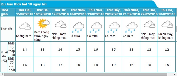 Trung Trung Bộ từ 15/2 có mưa, mưa rào. Bắc Bộ và Bắc Trung Bộ từ 15/2 trời chuyển rét, vùng núi có nơi rét đậm.