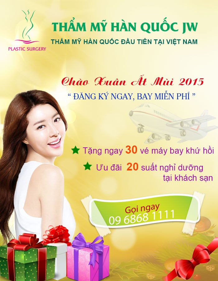 Đến với những dịch vụ thẩm mỹ làm đẹp của Thẩm mỹ viện JW để nhận ngay những phần quà ý nghĩa từ chương trình khuyến mại Đăng ký ngay, bay miễn phí.
