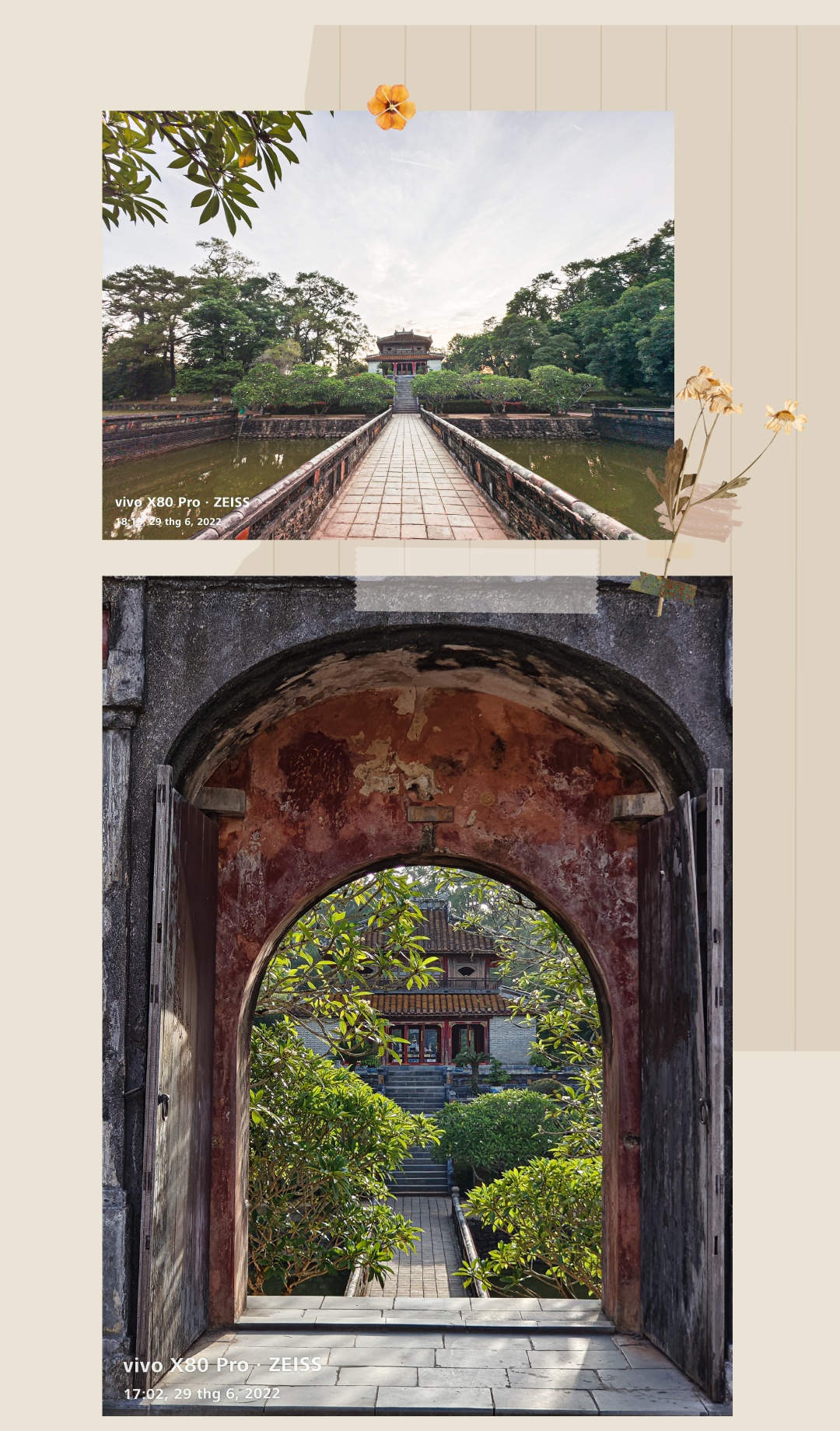 Nhờ tính năng màu tự nhiên ZEISS kết hợp công nghệ AI tăng cường từ vivo X80 Pro, dù nắng miền Trung vào hạ khá gay gắt, di sản cùng phong cảnh nên thơ của Huế vẫn được lưu lại chân thật, không xảy ra hiện tượng cháy sáng và giữ nguyên vẻ đẹp vốn có. Mỗi tấm ảnh về cố đô như được thổi hồn, gợi lên những câu chuyện lịch sử trăm năm.