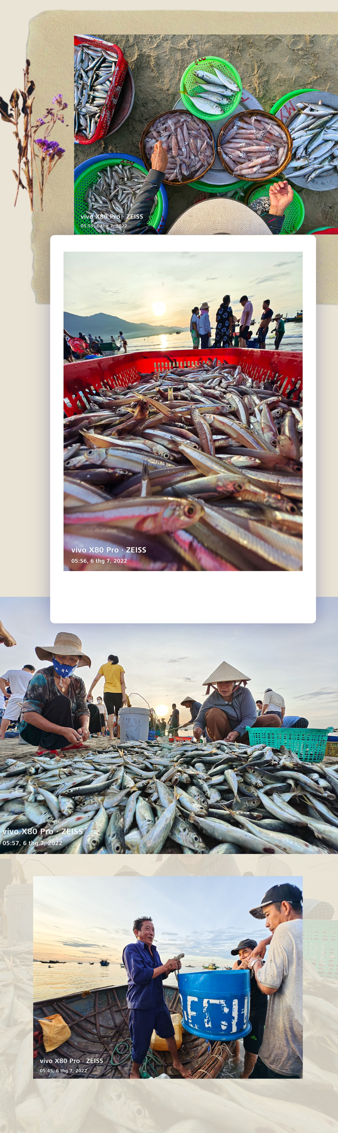 Nếu muốn cảm nhận hết vẻ đẹp bình dị của miền Trung, bạn nhất định phải một lần dậy sớm và ghé qua chợ cá Mân Thái (quận Sơn Trà, Đà Nẵng). Qua lăng kính vivo X80 Pro, bức tranh chài lưới mộc mạc, thân thuộc của nơi đây giúp người con phố thị trút bỏ muộn phiền, tạm quên nhịp sống xô bồ, hối hả.