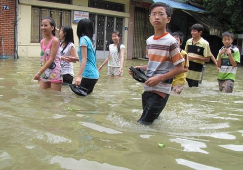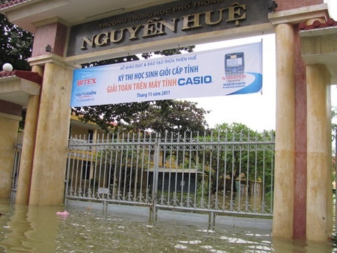 | Trường THPT Nguyễn Huệ -TP.Huế phải đóng cổng vì bị ngập nước. |