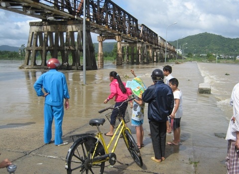 | Nước sông Kỳ Lộ (Phú Yên) dâng cao làm ngập cầu La Hai. |