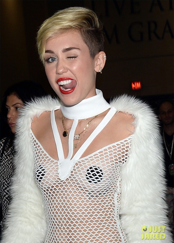 Miley Cyrus gây sốc khi diện áo lưới lộ miếng dán ngực