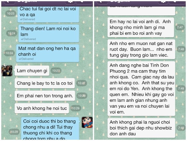 | Những tin nhắn lời yêu thương giải hòa của anh bị chính người đẹp Hoàng Yến tung lên mạng. |