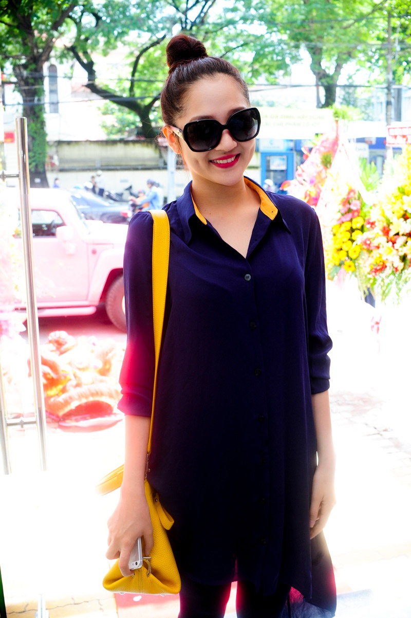 | Trước sự chú ý của mọi ống kính, người đẹp sinh năm 1987 liên tục tạo dáng rất đáng yêu, xì tin. Không chỉ vậy, Minh Hằng còn diện chiếc áo theo mốt không quần đang được nhiều mỹ nhân Việt ưa thích. |