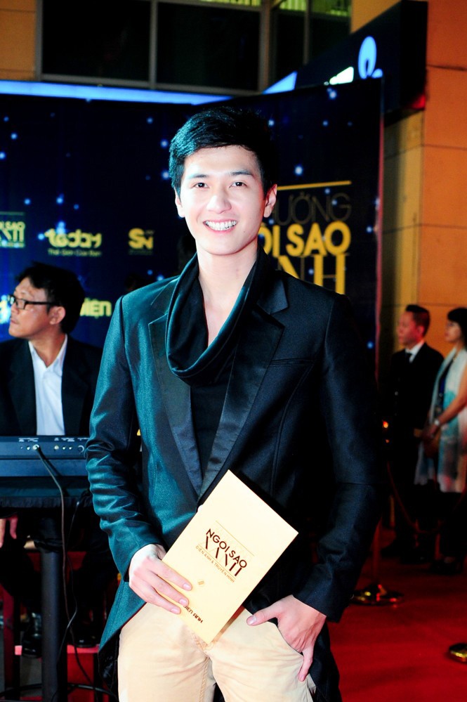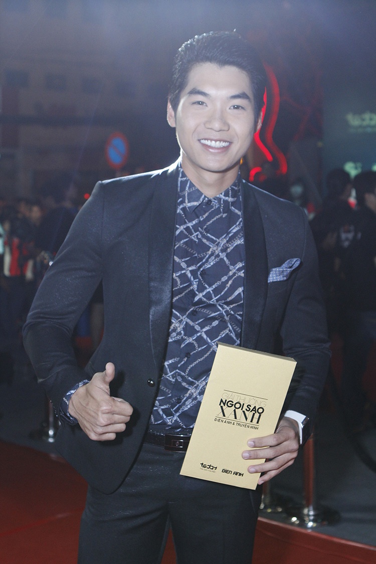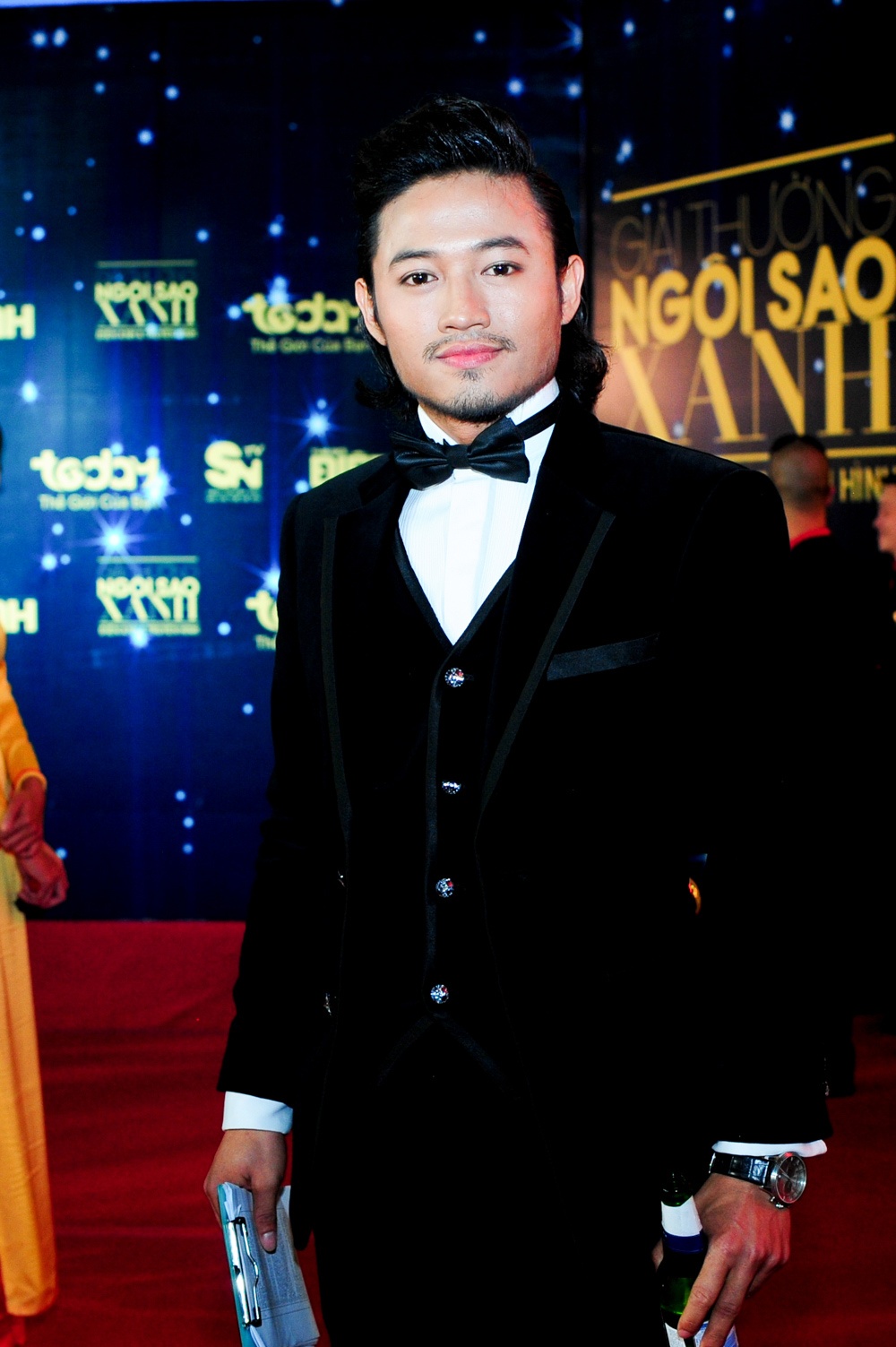 | Đàm Vĩnh Hưng đại diện cho đoàn phim Hiệp sĩ mù. Dù đang quay những cảnh quan trọng tại Hà Giang, anh vẫn tranh thủ bay về để dự Ngôi sao xanh. |