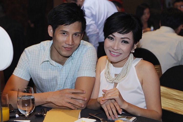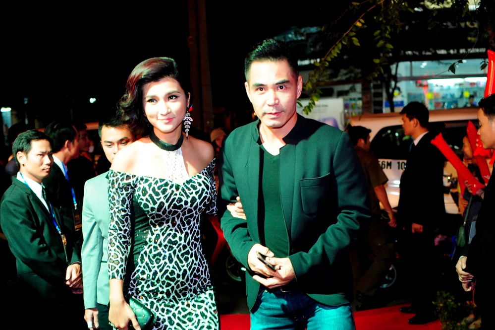| Kim Tuyến được nam diễn viên Trung Dũng tháp tùng đến sự kiện. |