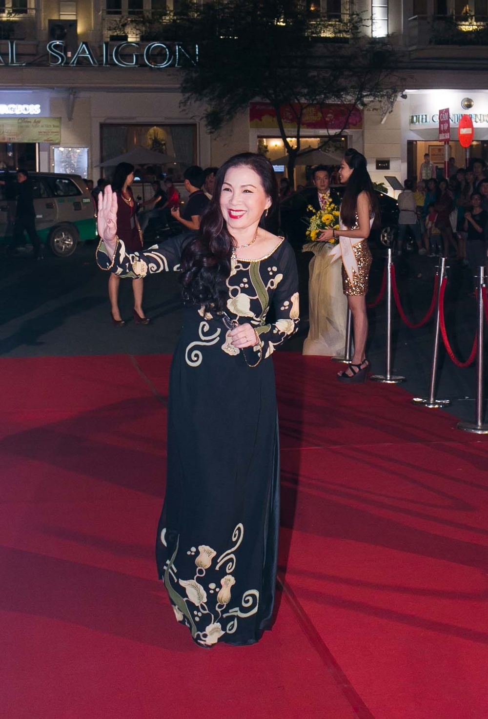 | NSƯT Kim Xuân được MC Bình Minh ra tận thảm đỏ để đón và dịu dàng gọi bằng "Má" bởi anh đã từng có dịp đóng vai con trai của nữ nghệ sĩ này trong một vài bộ phim. |