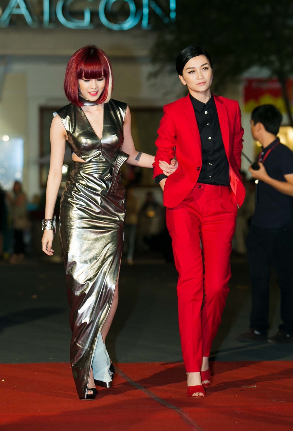 | Hai chị em Bee.T chọn phong cách hoàn toàn đối lập. Nếu như cô chị Thiều Bảo Trang rất "chuẩn man" với đồ Tây thì Thiều Bảo Trâm quyến rũ với bộ đầm được cắt cúp rất hiện đại. |