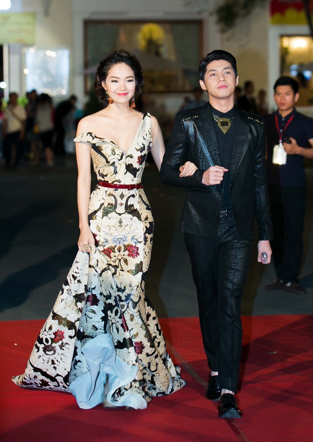 | Minh Hằng sánh đôi cùng Noo Phước Thịnh. Cặp đôi này đã gây xôn xao thảm đỏ khi vừa sải những bước chân đầu tiên. |