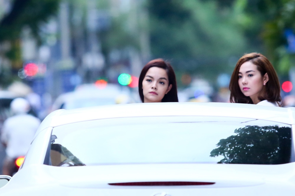 Hai nữ ca sĩ xinh đẹp thu hút mọi ánh nhìn trên đường phố khi diện váy ngắn, bước xuống từ xế hộp vào một nhà hàng ở trung tâm Sài Gòn.