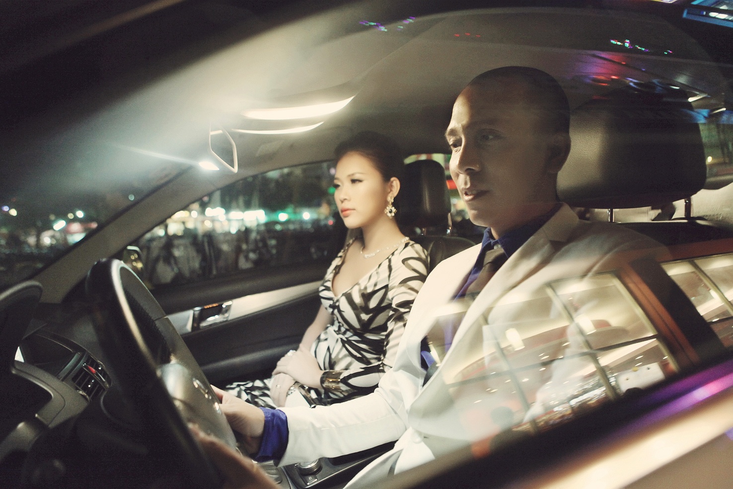 | Sau buổi gặp, Minh Tâm đưa Kim Yến đến tham dự đêm âm nhạc của giải thưởng truyền hình HTV. Anh lịch lãm với vest trắng xanh, còn Kim Yến khoe dáng vóc cao trong chiếc đầm dạ hội trắng đen. |