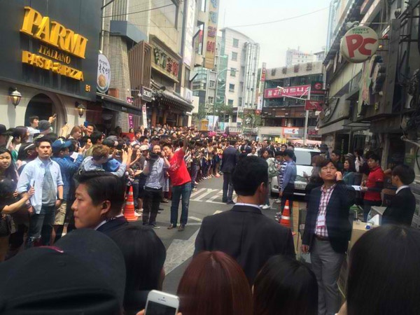 | Chiều 20/5, giao thông tại khu Shinchon, Seoul đã trở nên hỗn loạn vì thu hút quá đông báo chí cũng như người hâm mộ khi biết Jun Ji Hyun sẽ xuất hiện ở đây để tham gia một sự kiện quảng bá. |