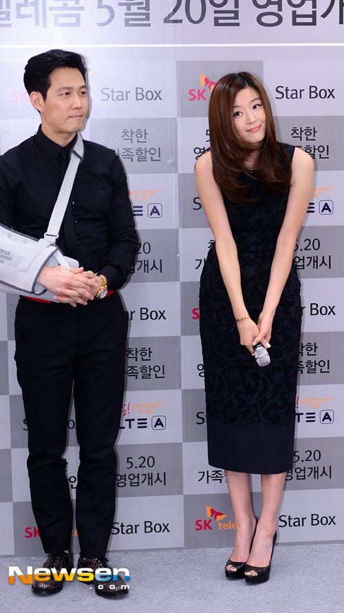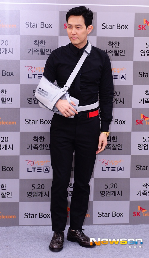 | Cô tham dự sự kiện cùng Lee Jung Jae. Chàng diễn viên điển trai vẫn góp mặt dù đang bị thương ở tay. |