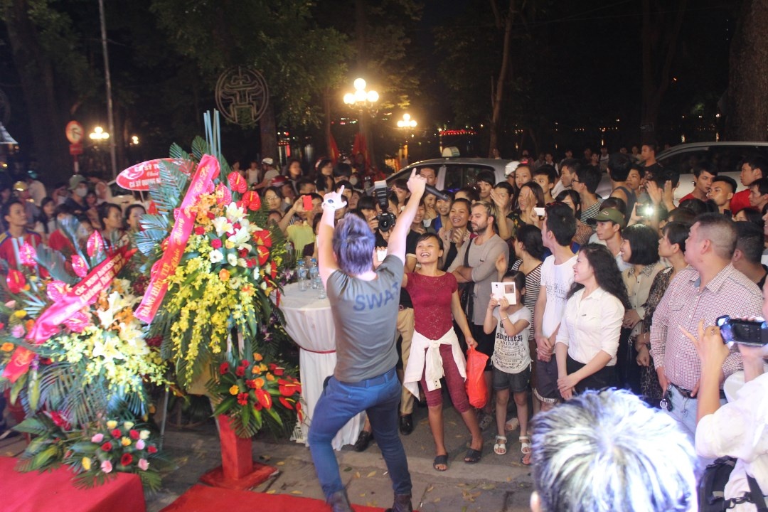 | Trong sự kiện này, Minh Vương đã cao hứng góp vui với hai ca khúc sôi động là Một thuở yêu người, Dĩ vãng cuộc tình, thu hút sự chú ý của những người đi đường. Nhiều người đã tò mò dừng lại để theo dõi tiết mục biểu diễn của thành viên nhóm M4U và nhiệt tình cổ vũ nam ca sĩ. |