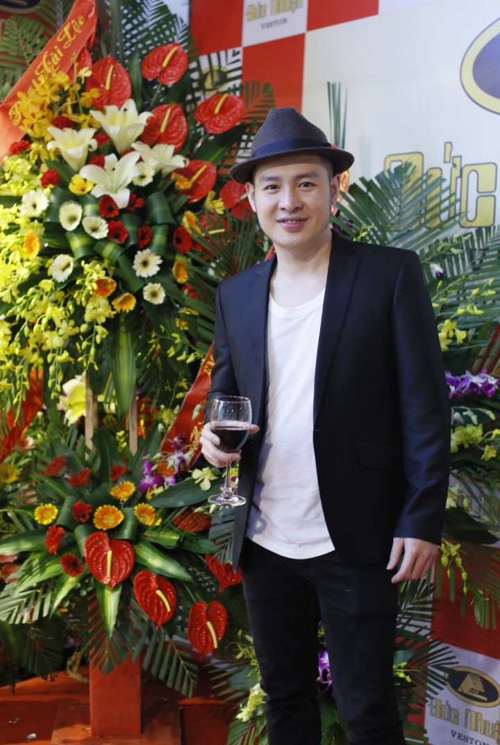 | Tối 13/9, Minh Vương tới dự buổi khai trương một cửa hàng veston cao cấp nằm trên con phố trung tâm tại Hà Nội. |