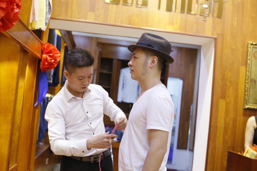| Anh cũng là người đã "mở hàng" bộ veston đầu tiên cho thương hiệu thời trang veston nam cao cấp của người đàn anh Quang Hà. |