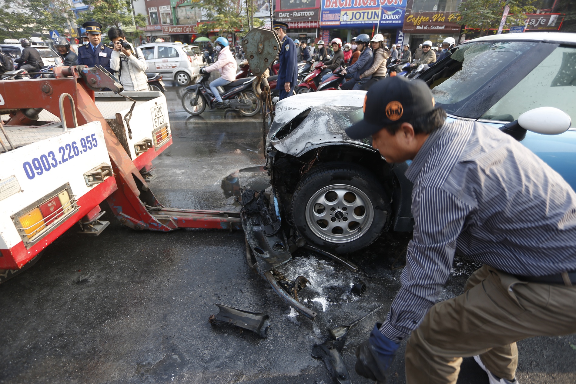 | Một số nhân chứng cho biết, khi đến đoạn đường trên, bỗng nhiên đầu xe bốc khói dữ dội. Do quá hoảng sợ, chị Nguyễn Thị Thanh Huyền hoảng hốt mở cửa xe kéo 2 con chạy ra ngoài tri hô. Người dân sống bên đường dùng bình cứu hỏa tại chỗ dập lửa nhưng không thành. Ngọn lửa nhanh chóng bùng phát, khói nghi ngút. |