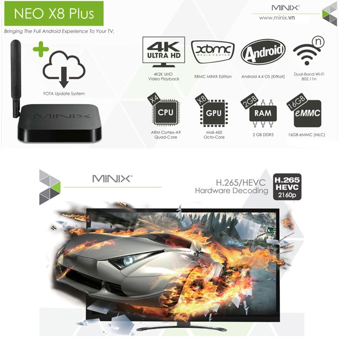 Minix trang bị bộ xử lý lõi tứ tốc độ 2.0 GHz, RAM 2 GB, đồ họa lõi 8 cho tốc độ xử lý nhanh gấp 3 lần so với các dòng sản phẩm TV box khác hiện đang bán trên thị trường.