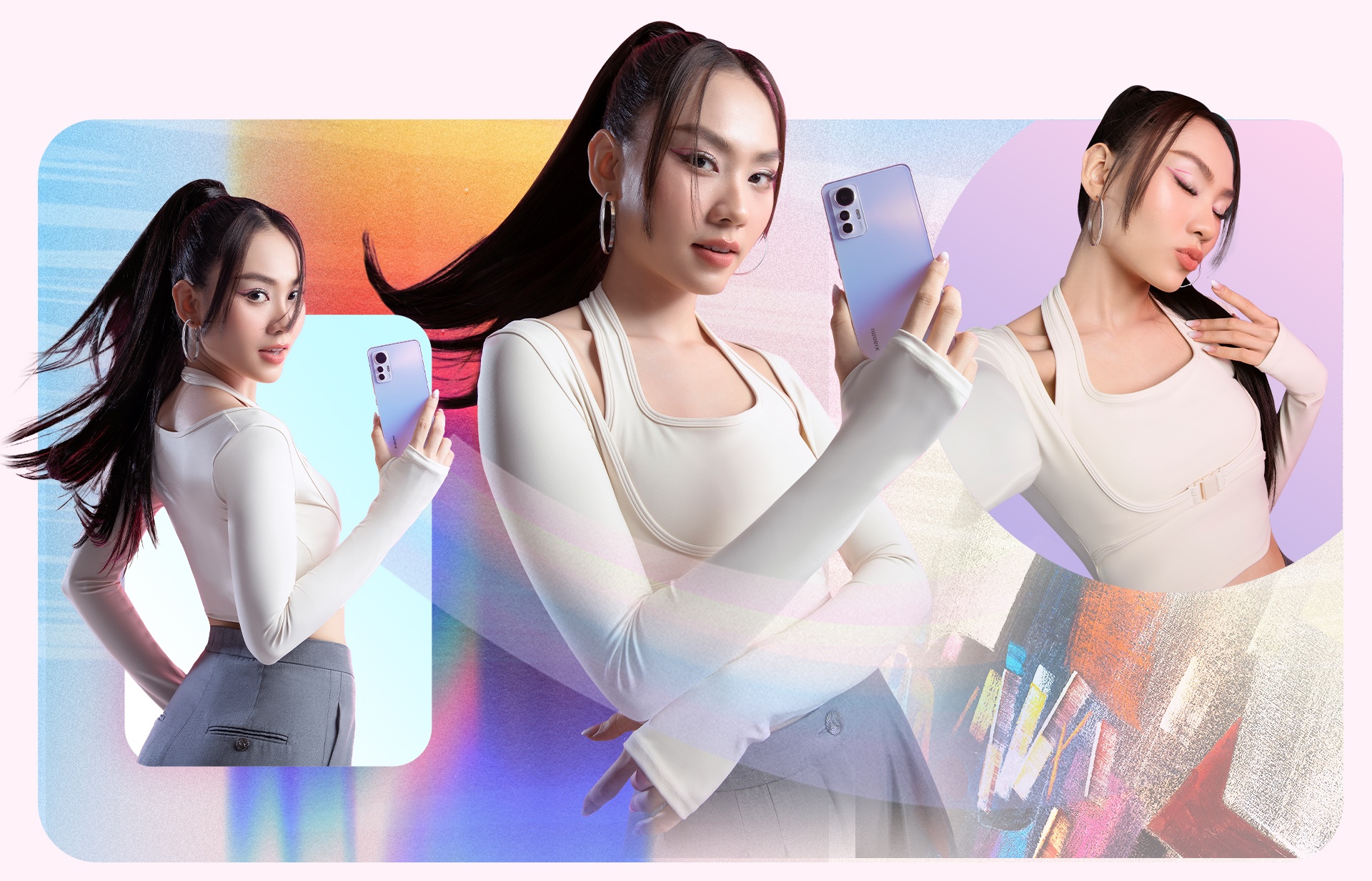Riêng với Xiaomi 12 Lite vừa ra mắt, Mai Phương dành nhiều lời khen cho 3 màu sắc hồng, đen và xanh thời thượng, hợp xu hướng hiện nay. “Tôi rất ấn tượng với Xiaomi 12 Lite. Sản phẩm sở hữu màu sắc, thiết kế rất bắt mắt và hiện đại, các tính năng chụp hình, quay phim, giải trí cũng tiện lợi, phù hợp nhu cầu công việc, giải trí cần di chuyển liên tục của tôi”, Mai Phương chia sẻ.