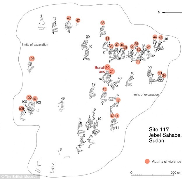 Các nhà khoa học tin rằng, ngôi mộ tập thể nằm ở bờ đông sông Nile, đoạn chảy qua miền bắc Sudan, là chứng tích của những cuộc xung đột vũ trang đầu tiên trên thế giới.